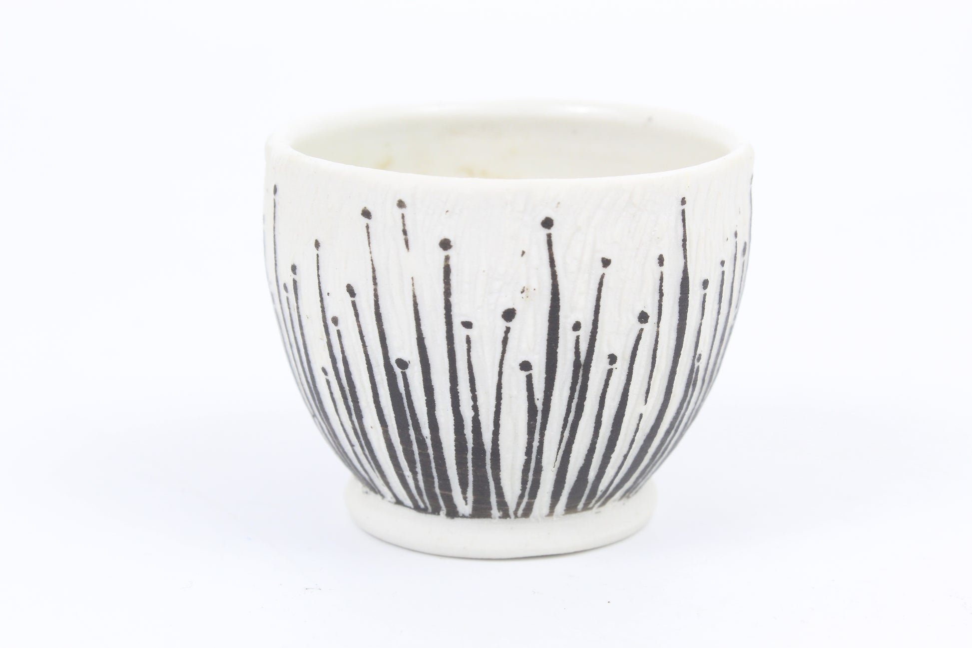 Wheel thrown then hand carved using a Sgraffito technique. Inspired by the forest floor and the little surprises you find! Porcelain is an amazing and a beautiful material to work with, most pieces are translucent in sunlight.