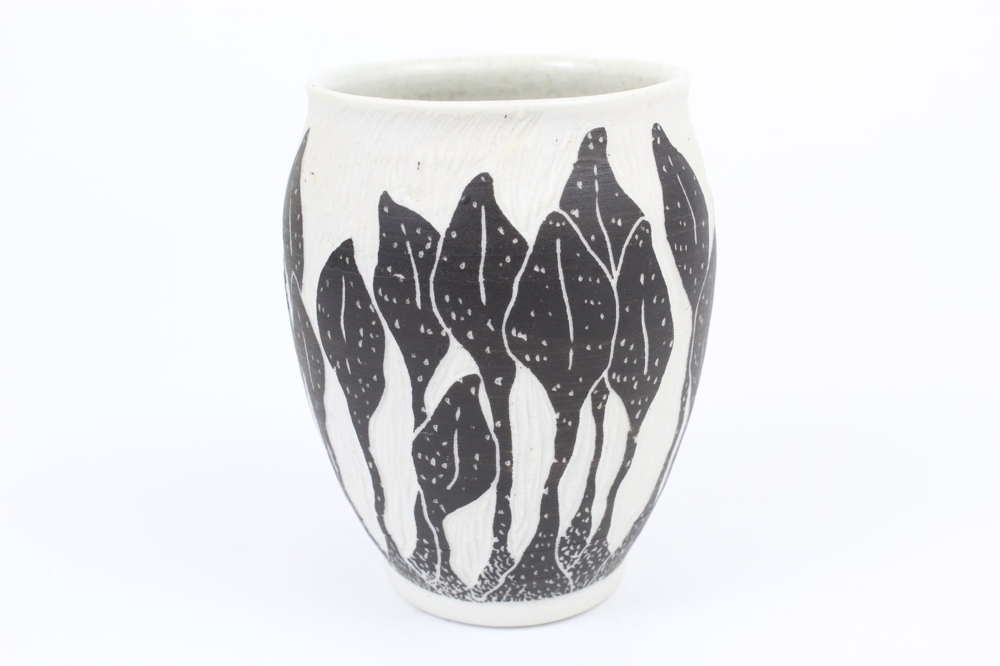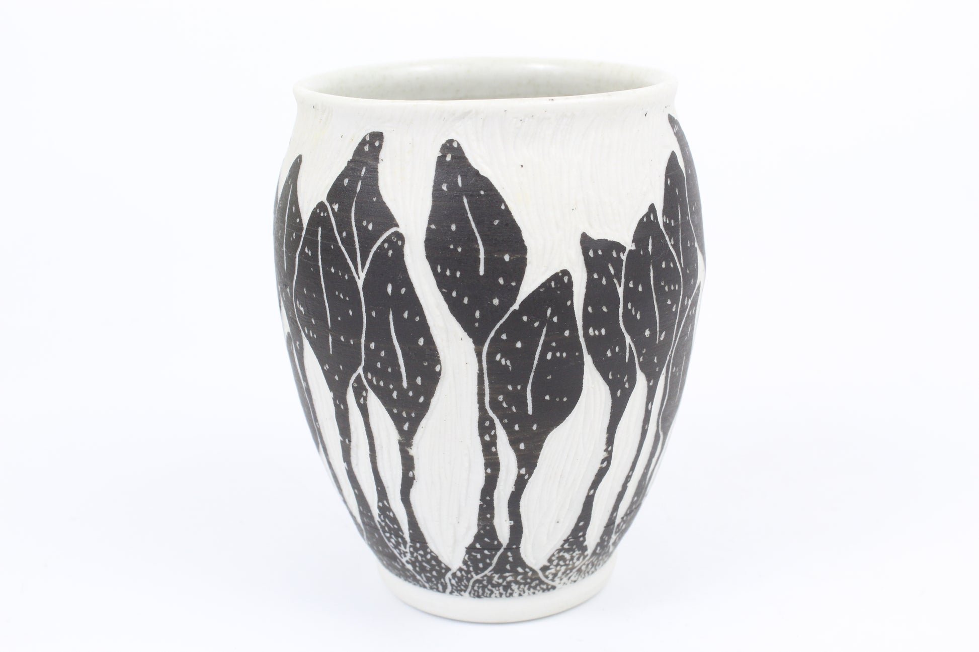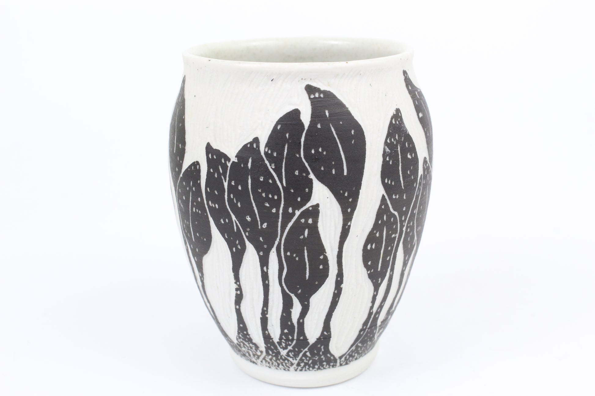 Wheel thrown then hand carved using a Sgraffito technique. Inspired by the forest floor and the little surprises you find! Porcelain is an amazing and a beautiful material to work with, most pieces are translucent in sunlight.