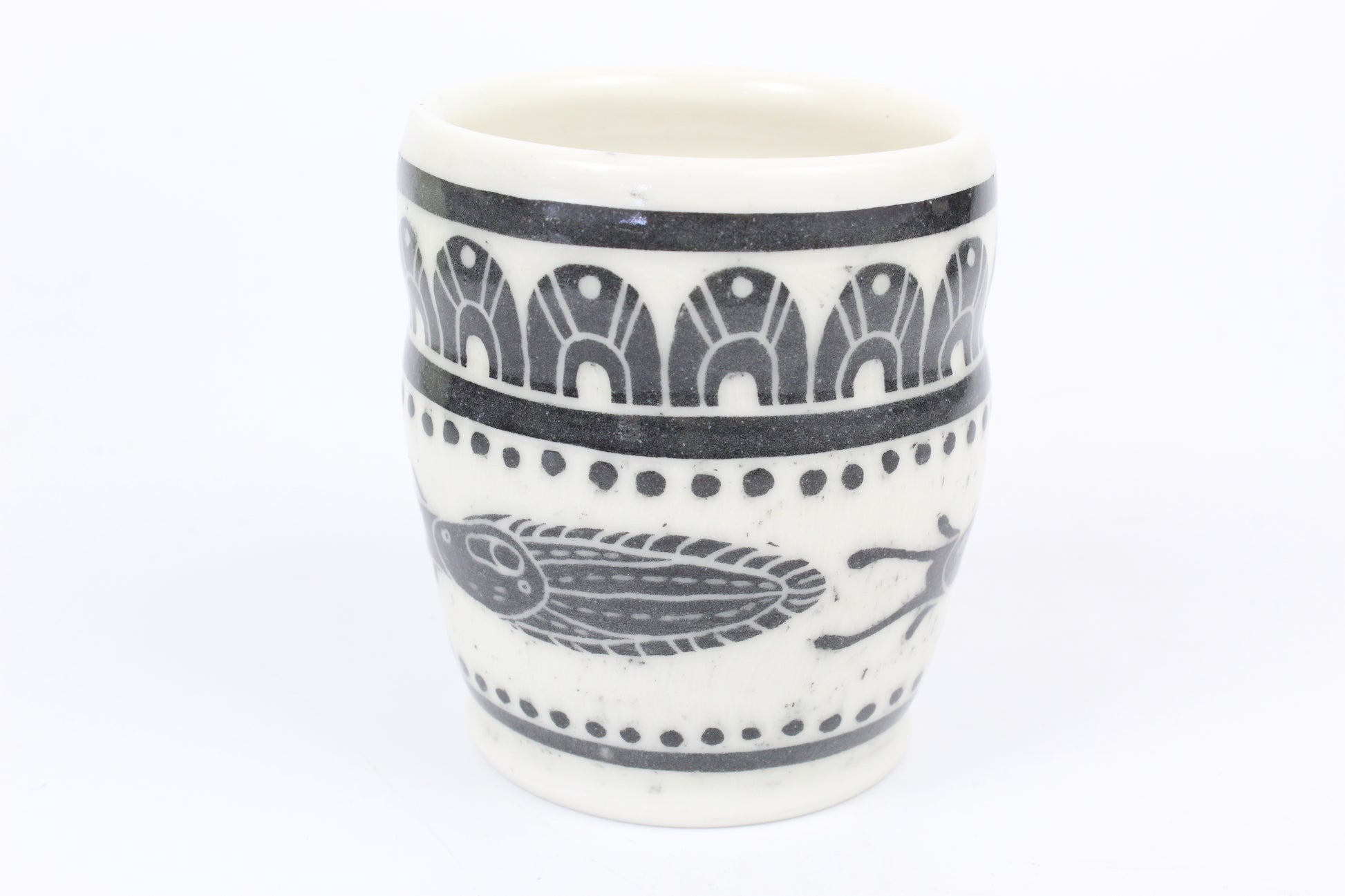 Wheel thrown then hand carved using a Sgraffito technique. Inspired by the forest floor and the little surprises you find! Porcelain is an amazing and a beautiful material to work with, most pieces are translucent in sunlight.