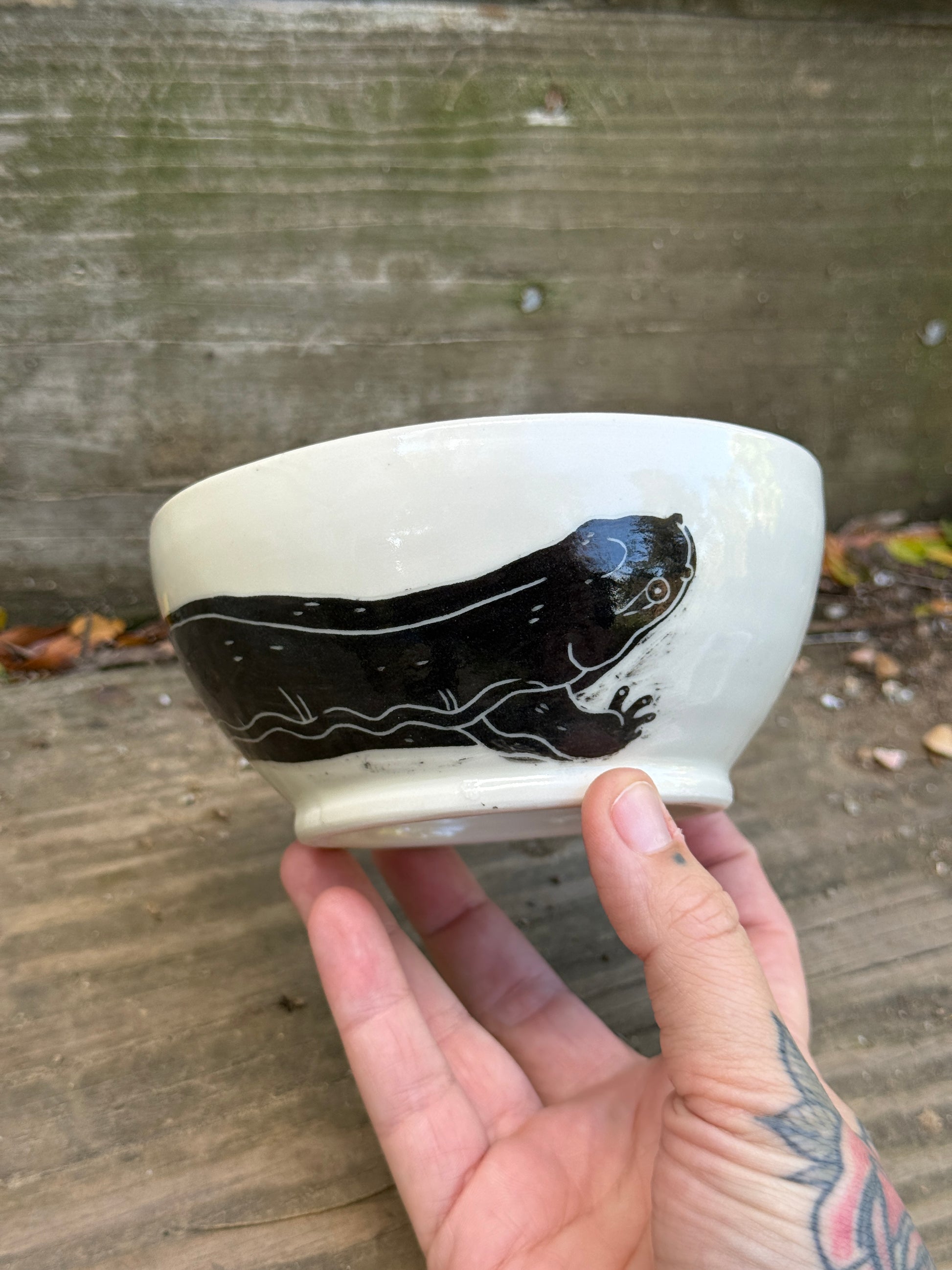 Wheel thrown then hand carved using a Sgraffito technique. Inspired by the forest floor and the little surprises you find! Porcelain is an amazing and a beautiful material to work with, most pieces are translucent in sunlight.