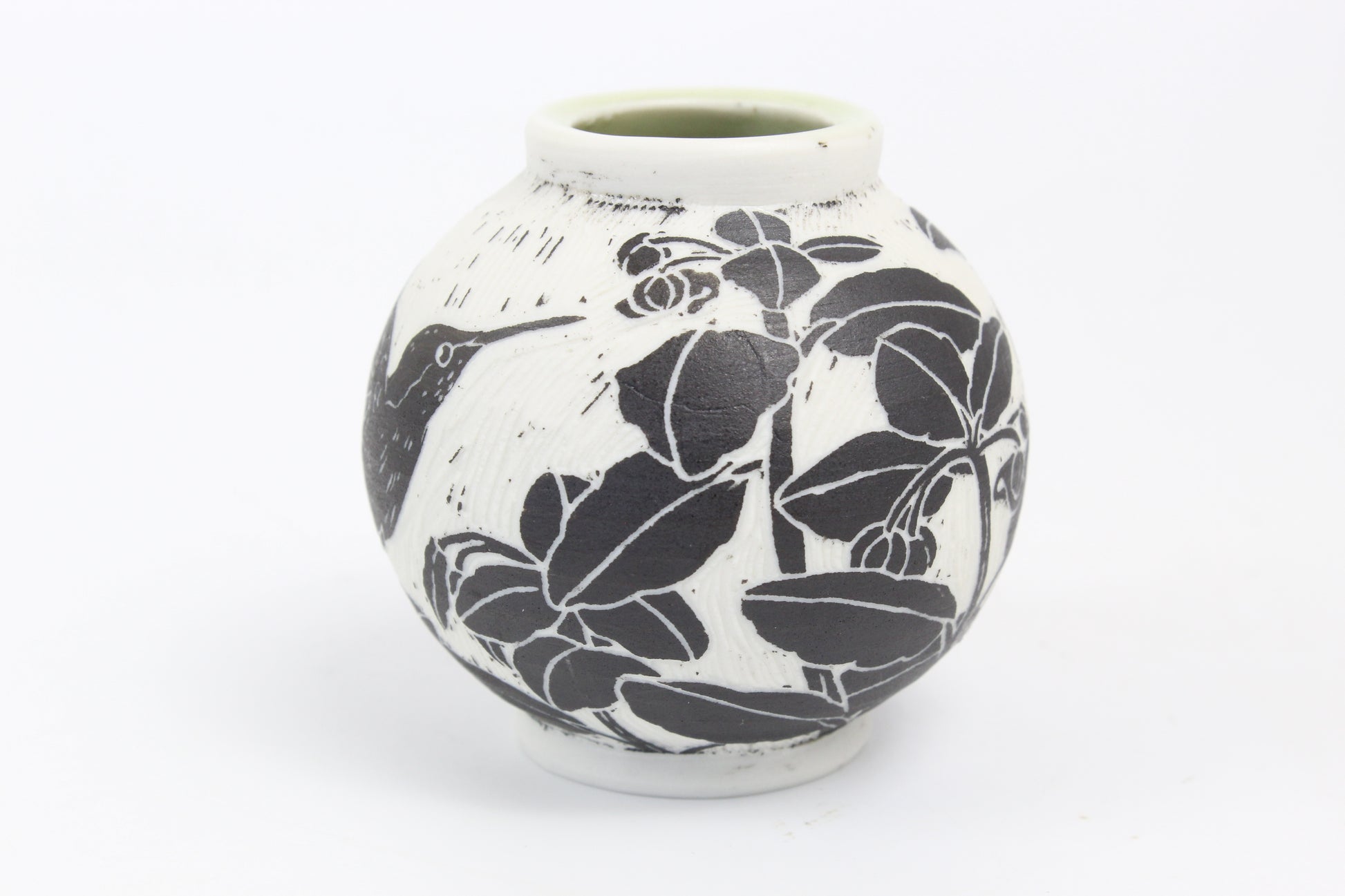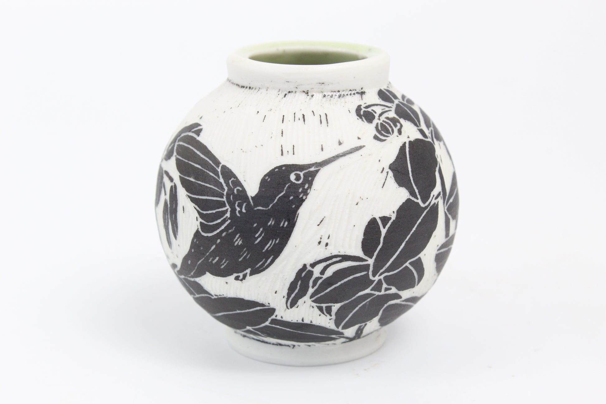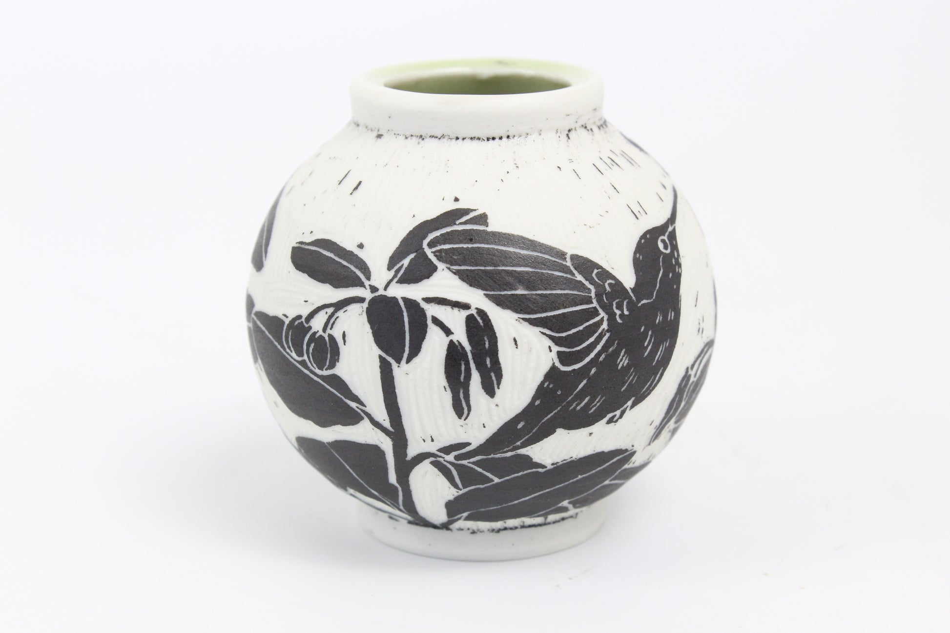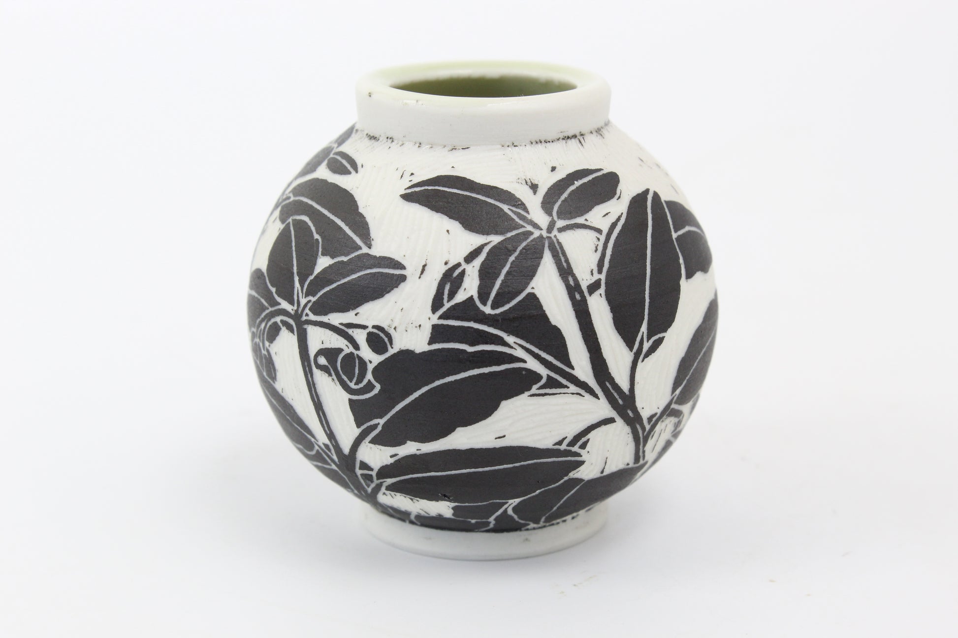 Wheel thrown then hand carved using a Sgraffito technique. Inspired by the forest floor and the little surprises you find! Porcelain is an amazing and a beautiful material to work with, most pieces are translucent in sunlight.