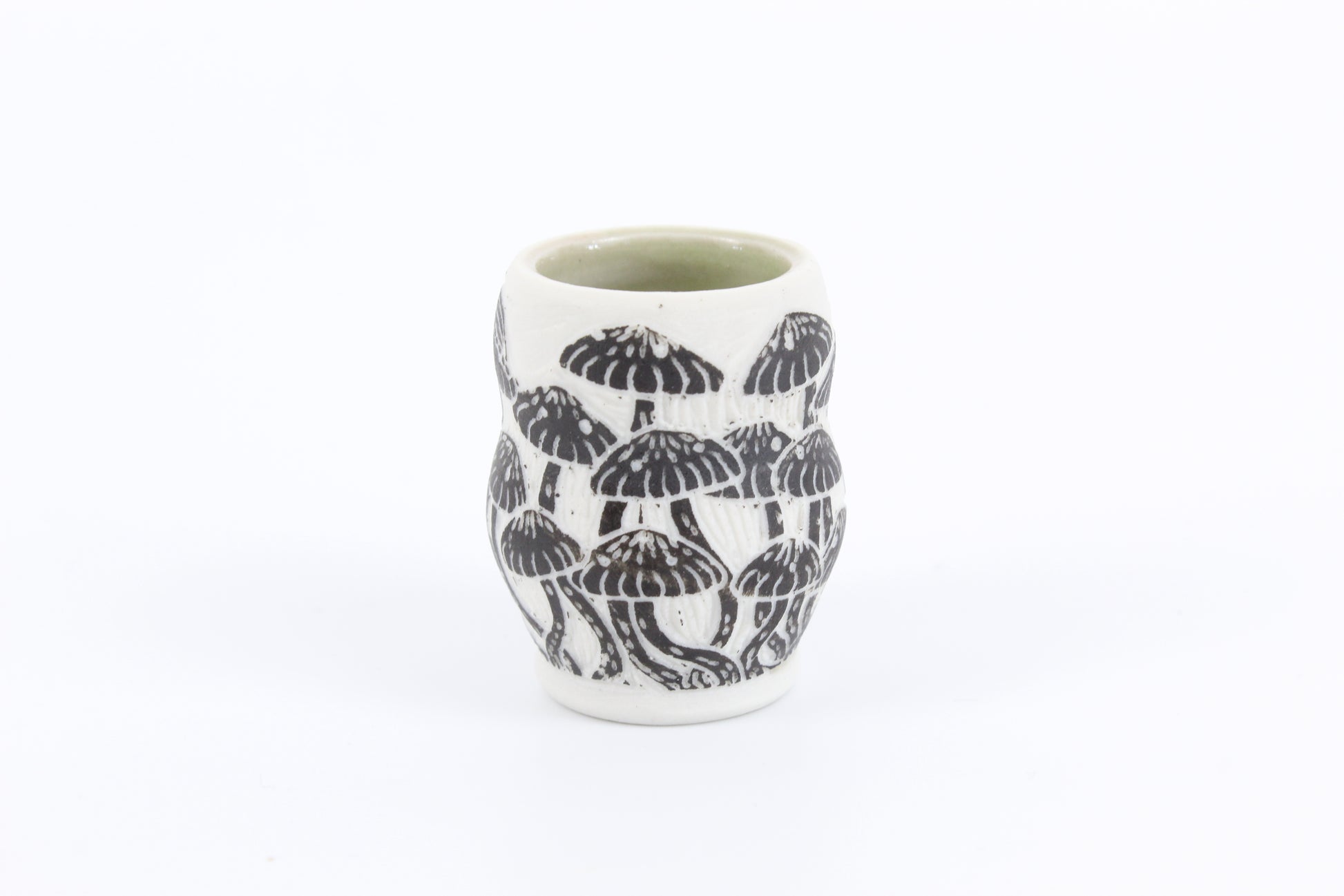 Wheel thrown then hand carved using a Sgraffito technique. Inspired by the forest floor and the little surprises you find! Porcelain is an amazing and a beautiful material to work with, most pieces are translucent in sunlight.