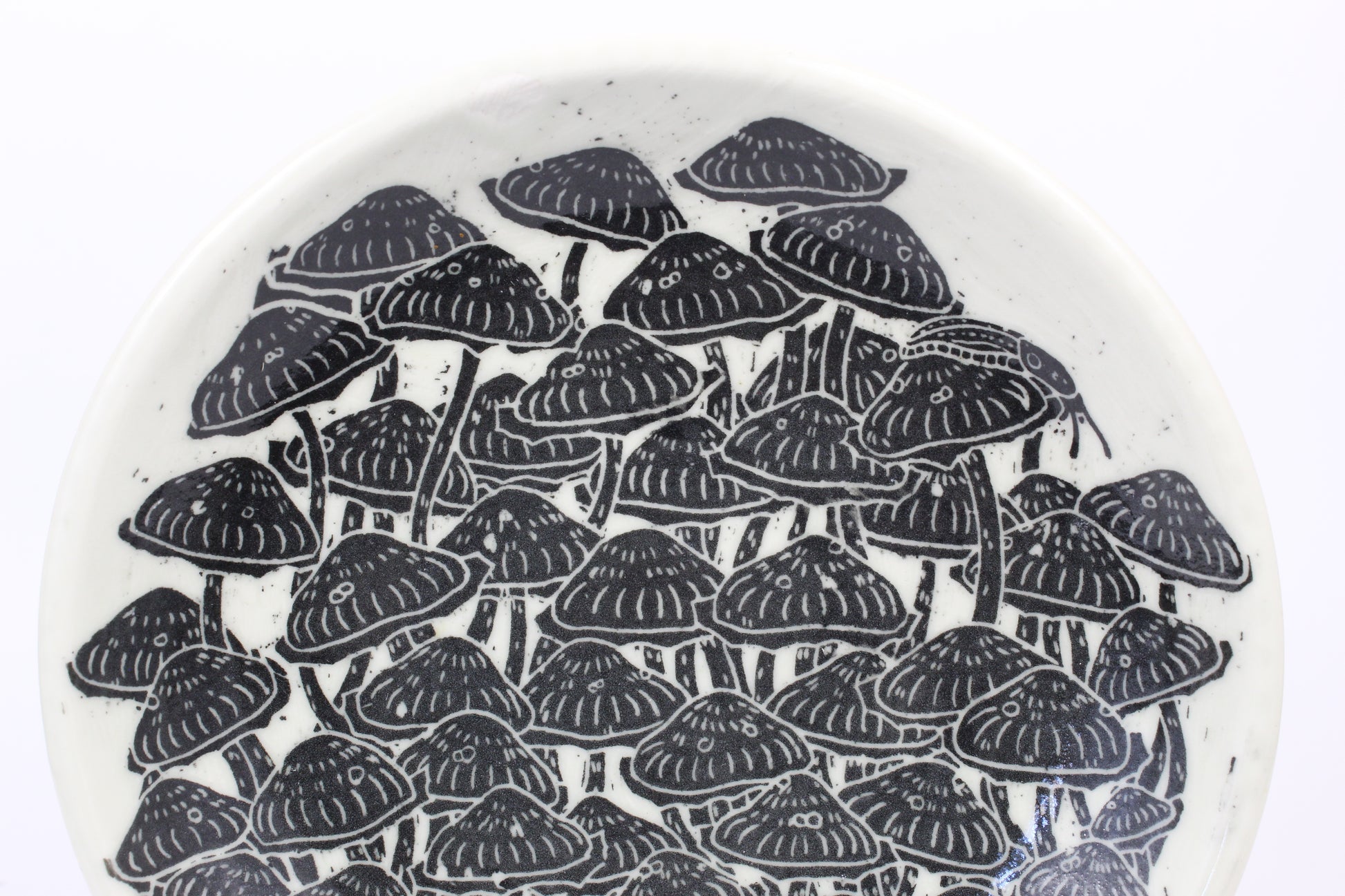 Wheel thrown then hand carved using a Sgraffito technique. Inspired by the forest floor and the little surprises you find! Porcelain is an amazing and a beautiful material to work with, most pieces are translucent in sunlight.